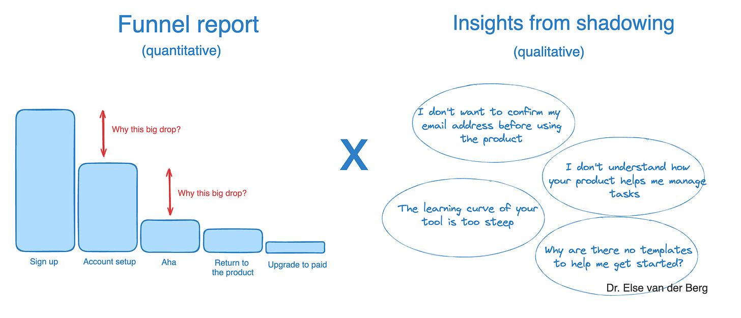 A good PM combines qualitative and quantitative data to get a deep understanding of how users are using and experiencing the product. While the quantitative data brings in objective numbers, the qualitative data adds the layer of subjective context you need to extract meaning from the numbers and insights.